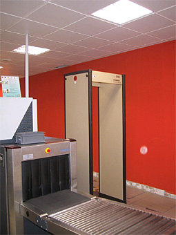 Ein Metalldetektor-Tor im Sicherheits-Kontrollbereich ist nicht funktionsfähig. Ursache der Störungen sind relativ starke niederfrequente magnetischen Flussdichten am Standort, die von einer Niederspannungshauptverteilung ausgehen, die sich im Nebenraum befindet.